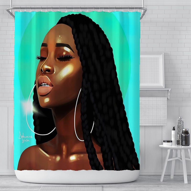 - Dress up your bathroom in an African American-themed style with this black afro shower curtain.
