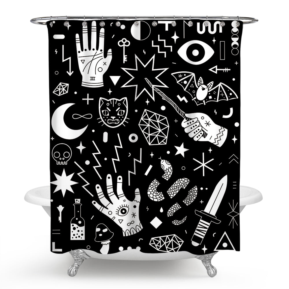 Black Goth Witchcraft Palmistry Psychic Shower Curtain