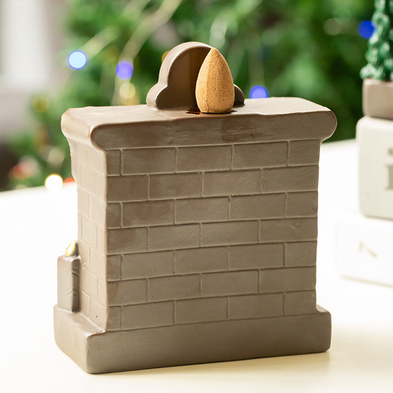 Christmas Fireplace Incense Backflow Burner with LED Lighting Incense Stick Hole
