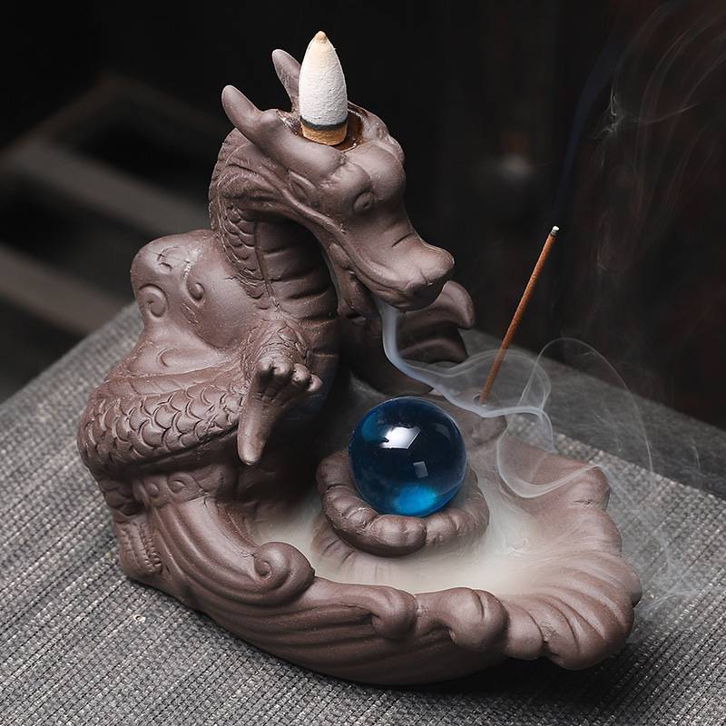 - This incense burner combines the dragon and the backflow incense design, showing traditional and modern styles.