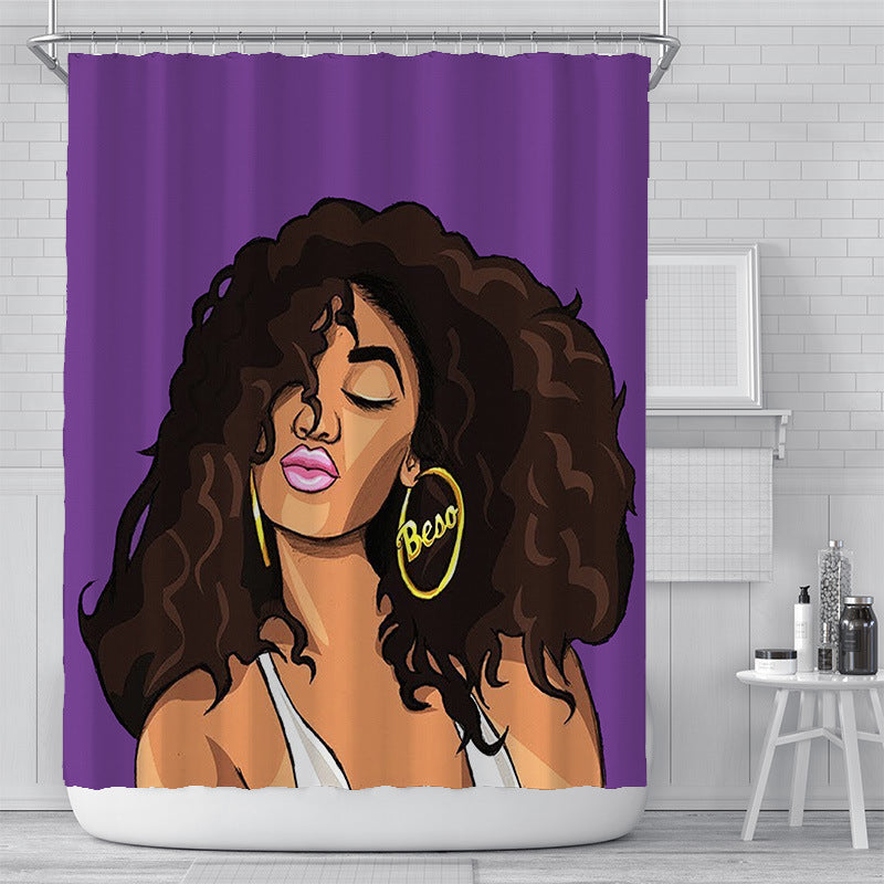 - This afro lady bathroom curtain has a dozen C-shaped plastic shower hooks that come you hanging simply.