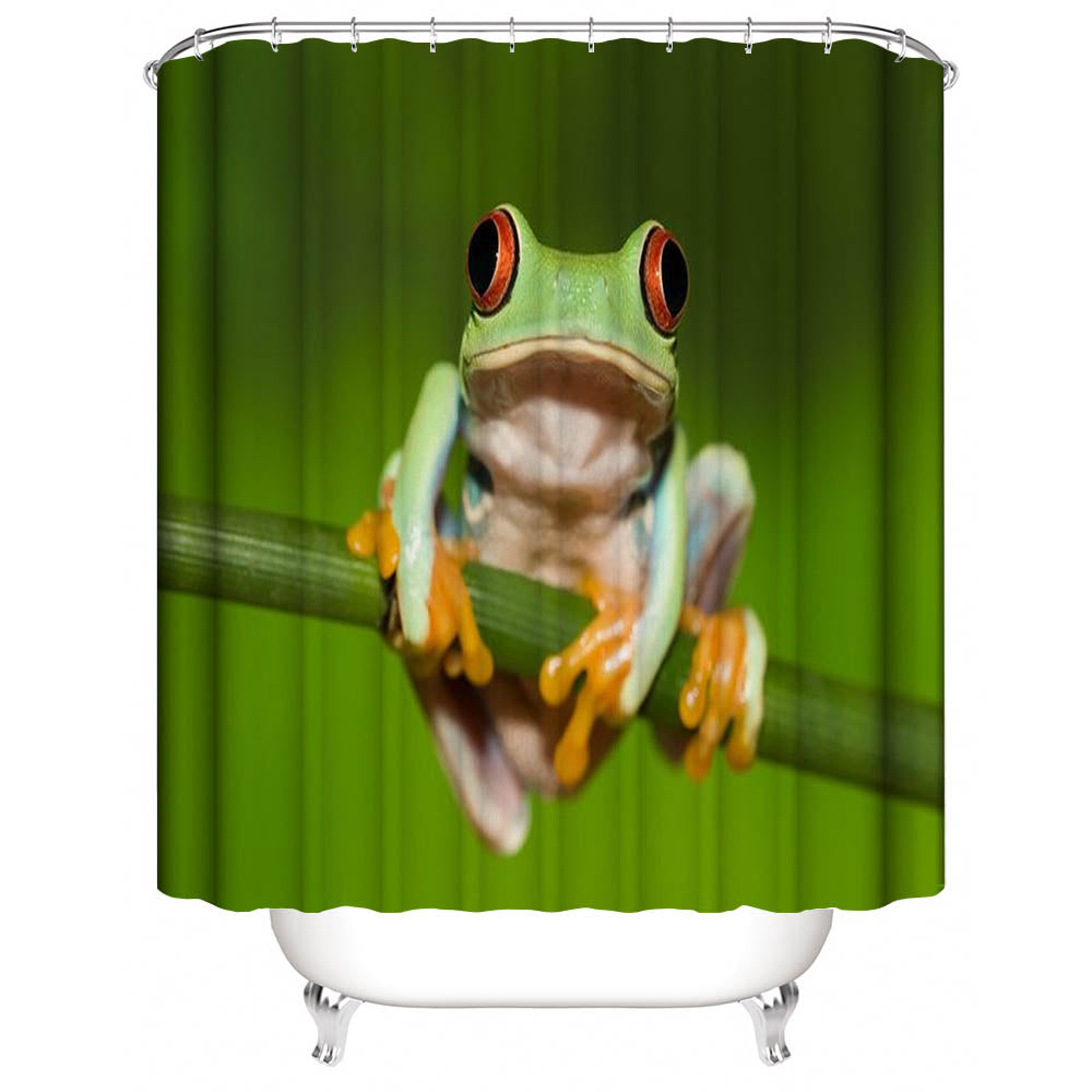 - This cute tree frog bathroom curtain has a dozen C-shaped plastic shower hooks that come you hanging simply.