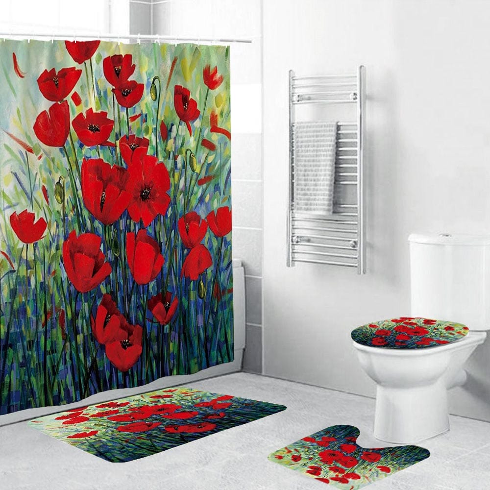 - Dress up your bathroom in an flower-themed style with this red poppies shower curtain.
