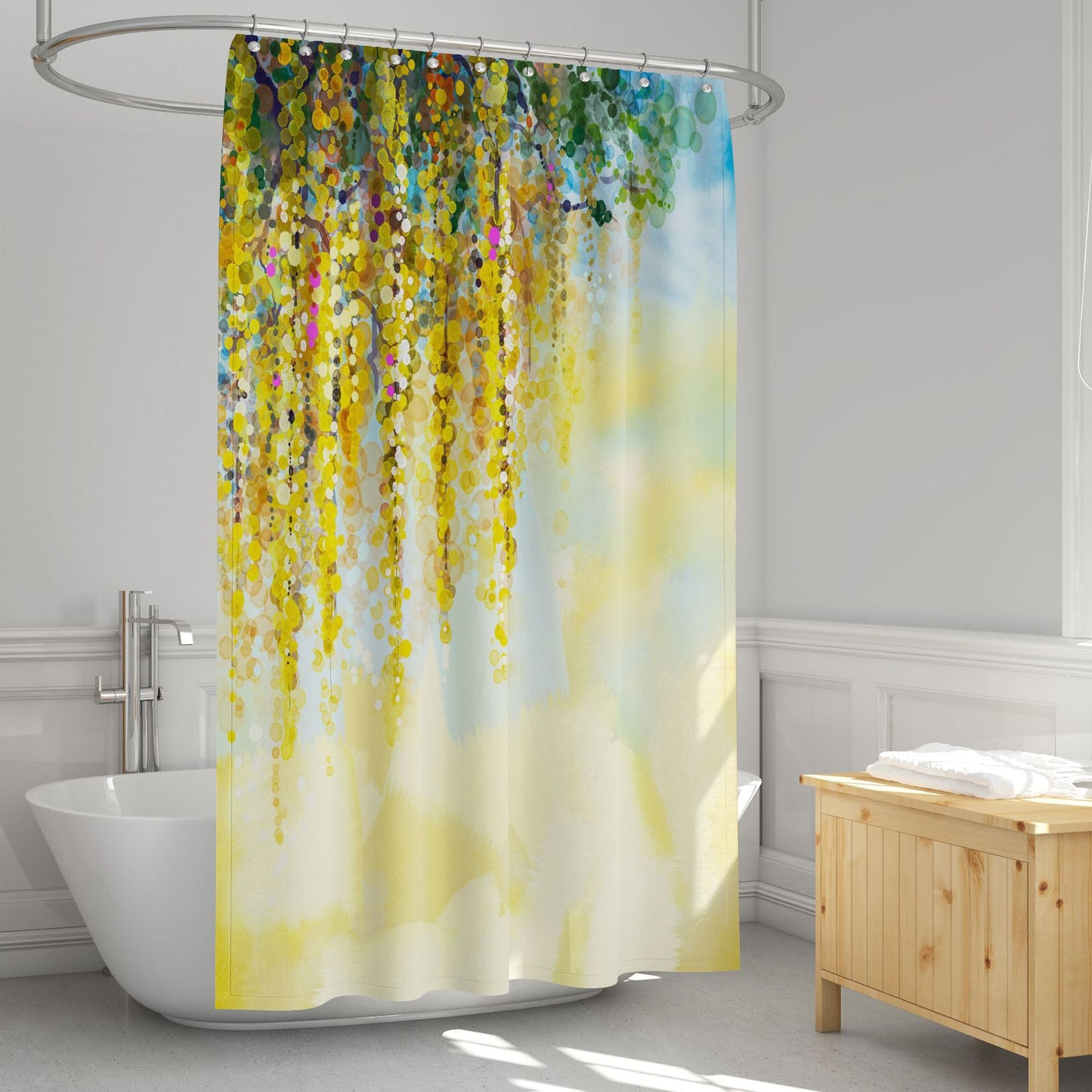 Yellow watercolor dot art flowers -- Our flower-themed bathroom curtain will make a statement in any bathroom.